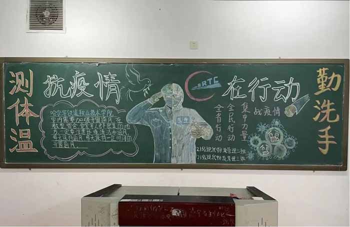 各班积极参与,精心准备,紧扣疫情防控主题,创作出一幅幅主题鲜明、内容丰富、图文并茂、形式新颖的黑板报作品。通过精美的绘画,和详实的文字,展现了各组独特的风采!