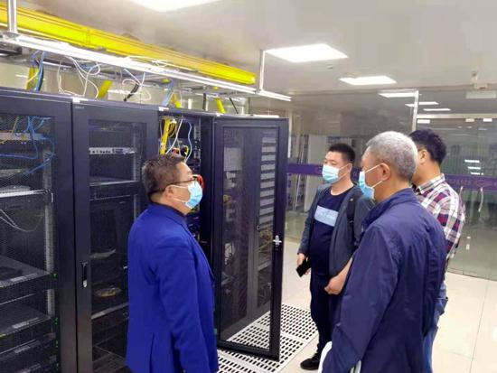 汇报会后,专家组一行前往学院核心机房实地考察。考察中专家组认真查看了机房的监控、消防、供电、新风、空调等系统的运行情况,并结合其他兄弟高校信息化建设情况,针对交换机、服务器、网络安全设备的组成和性能进行了经验交流。