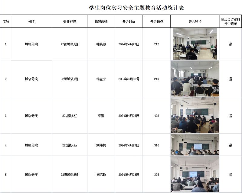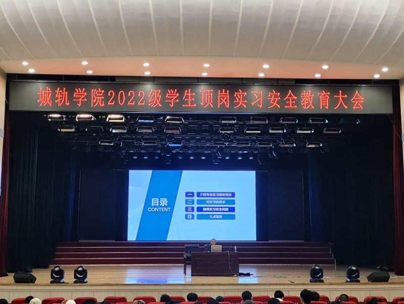 学生顶岗实习是大学生在校期间获取实践经验和锻炼能力得重要途径,为了保障学生顶岗实习期间的安全,2024年4月,城轨学院落实党建+职教双促双融要求,组织开展了“四级”安全教育,分院、专业部长、实习指导老师、辅导员,从教学管理、学生管理及确保顶岗实习质量和效果。