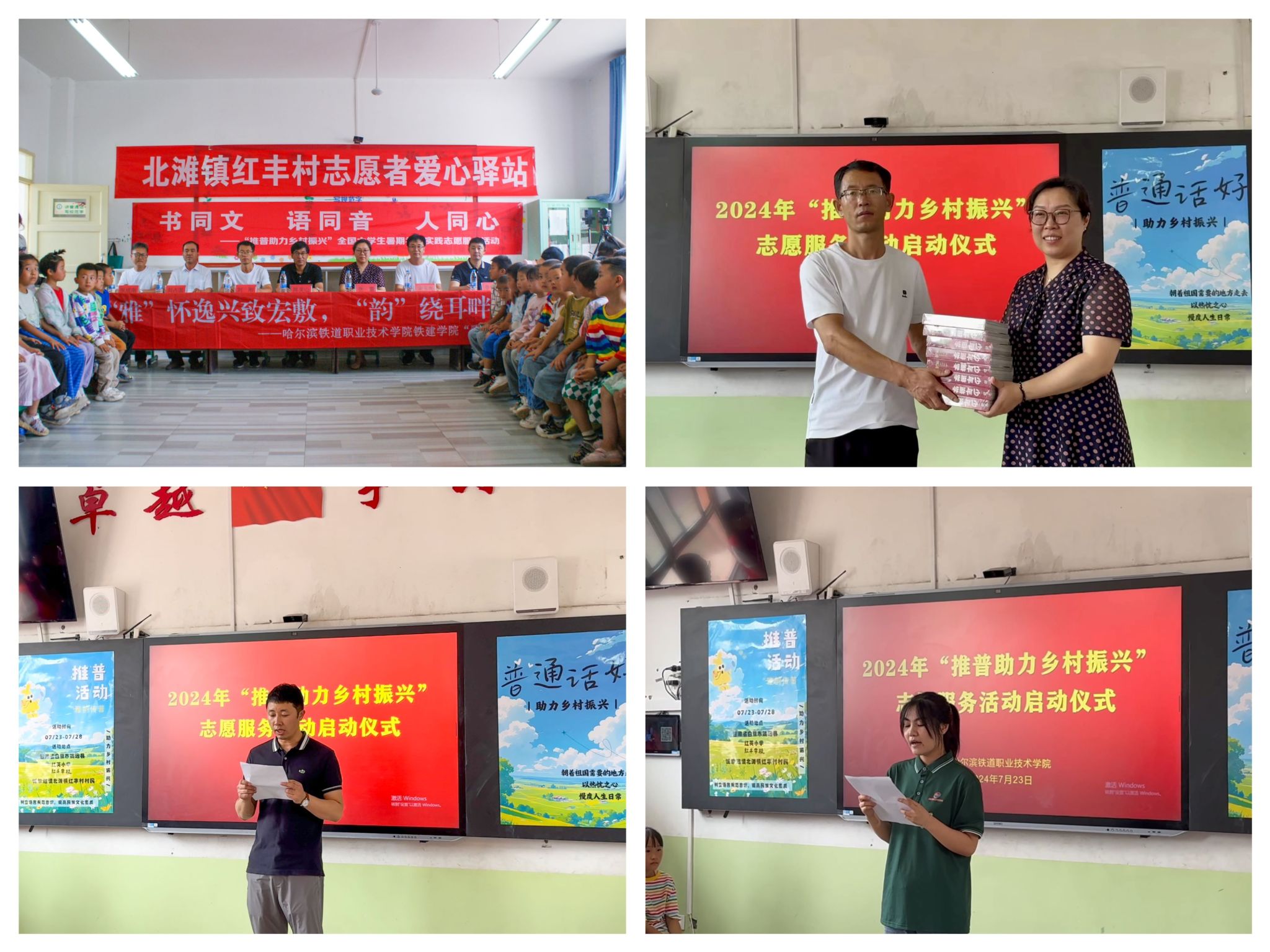 为更好地激发中小学生的学习热情和自我提升动力,增强他们的文化自信和语言自信,提升其语言能力和整体素质,进一步推动乡村教育的发展,助力乡村地区的经济、社会和文化发展。哈尔滨铁道职业技术学院“雅韵传普团”前往甘肃省靖远县北滩镇红丰学校,为中、小学生开展为期一周的2024年“推普助力乡村振兴”大学生暑期社会实践志愿服务活动。