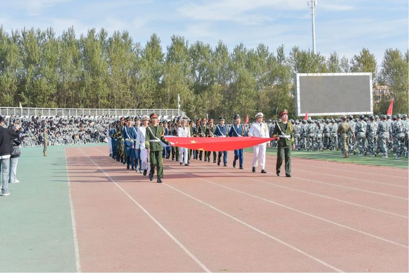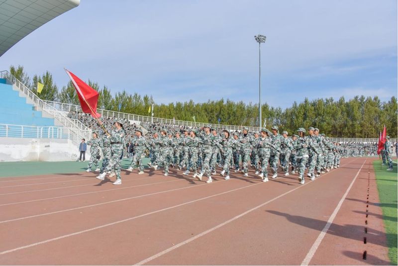 伴随着振奋人心的乐曲,标兵就位,分列式开始。仪仗队受阅方阵身姿挺拔,步伐稳健,每一步都展现军人庄严与荣耀;连队受阅方阵意气风发,朝气蓬勃,口号响彻云霄;军体拳队伍拳拳生风、步步有力,彰显不屈意志,练就钢铁毅力。这是对军训成果完美展现,更是对青春誓言坚定回响。