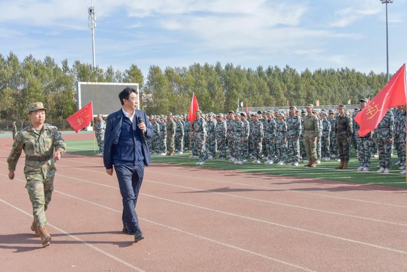 国旗缓缓升起,伴随着全体师生高亢嘹亮国歌声,军训会操拉开序幕。学院院长孟维军检阅军训方阵,并对全体2024级新生致以亲切问候。