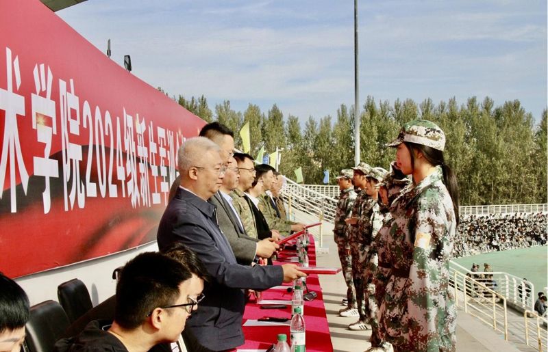 秣马厉兵整待发,晨光微露映英姿。9月23日,学院2024级新生军训会操暨表彰大会在体育场隆重举行。93015部队副政委侯珉东,副参谋长宋克俭,学院党委书记李颖,院长孟维军,党委副书记、纪委书记、工会主席莫应胜,副院长王果隆,副院长王璐,副院长王天一,党委委员、工会副主席王秋刚,以及相关处室负责人和各分院院长出席本次大会。大会由学院副院长马绍南主持。