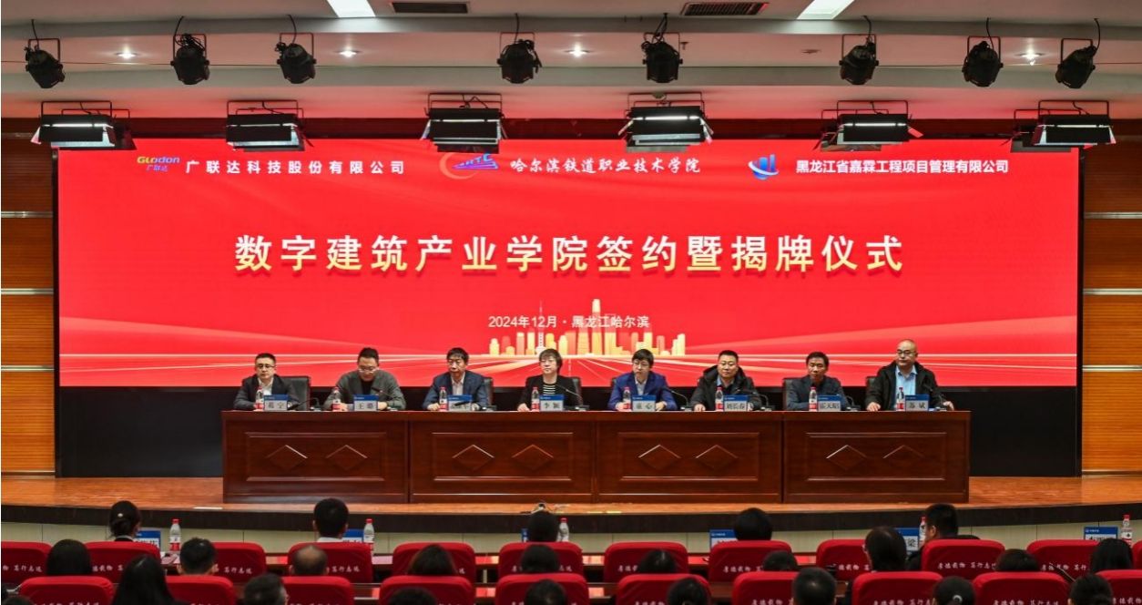 12月16日,哈铁学院与广联达科技股份有限公司、黑龙江省嘉霖工程项目管理有限公司共建“数字建筑产业学院”成立大会在学院图书馆报告厅举行。学院党委书记李颖、院长孟维军、广联达科技股份有限公司数字教育副总经理童心、解决方案部总监霍天昭、黑龙江省嘉霖工程项目管理有限公司总经理刘长春、副总经理苏斌及合作单位嘉宾、师生代表参加成立大会,会议由副院长王璐主持。