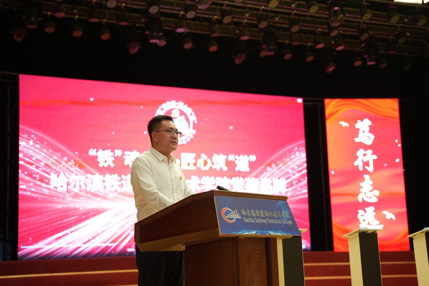 薛健代表中铁国资党委对哈铁学院“‘铁’魂先锋·匠心筑‘道’”党建品牌的成功发布表示祝贺,向奋斗在学院各个岗位的哈铁人,付出的努力、做出的贡献表示由衷的感谢!他指出,哈铁学院立足立德树人根本任务,不断加强党的领导党的建设,立足新发展阶段、贯彻新发展理念、融入新发展格局,在人才培养、专业建设、社会服务等方面取得了显著成绩,形成了以学历教育和职业培训双轮驱动的新发展局面,为中铁国资的稳定发展做出了哈铁贡献。党建品牌的发布,是哈铁学院以一流党建引领事业高质量发展的良好开端,充分展示了哈铁学院坚定实施党建赋能战略、攻坚克难推动改革发展的信心决心,充分彰显了哈铁学院建设中国特色高水平高职院校的宏大愿景。
