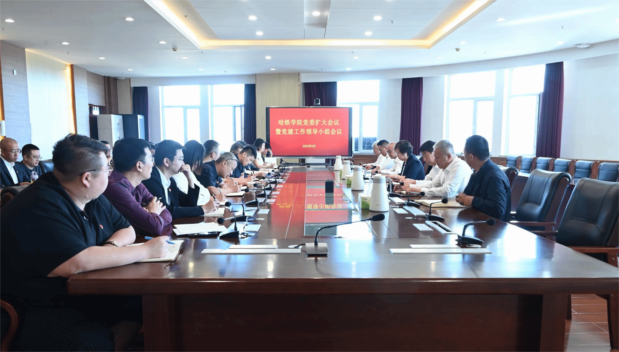 9月15日,哈铁学院党委召开扩大会议暨党建工作领导小组会议,传达学习习近平总书记关于深入贯彻中央八项规定精神学习教育的重要指示精神,学习贯彻中央党的建设工作领导小组会议精神、国资委党委扩大会议暨党建工作领导小组会议精神、中国中铁党委扩大会议暨党建工作领导小组会议精神和中铁国资党委扩大会议暨党建工作领导小组会议精神,系统总结学院党委学习教育工作,研究部署巩固拓展学习教育成果、锲而不舍落实中央八项规定精神、推进作风建设常态化长效化举措。学院党委书记李颖主持会议并讲话。学院领导班子成员出席会议。