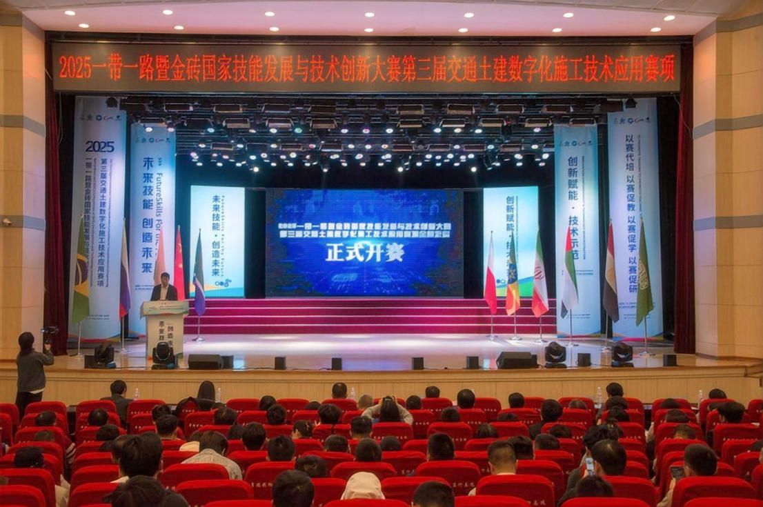 9月26日,2025一带一路暨金砖国家技能发展与技术创新大赛第三届交通土建数字化施工技术应用竞赛全国总决赛在我院隆重开幕。本次决赛共有来自全国30个省级行政区141所院校253支学生队伍、28支教师队伍进入决赛,更有蒙古国、孟加拉人民共和国及加纳共和国等国家留学生参赛。