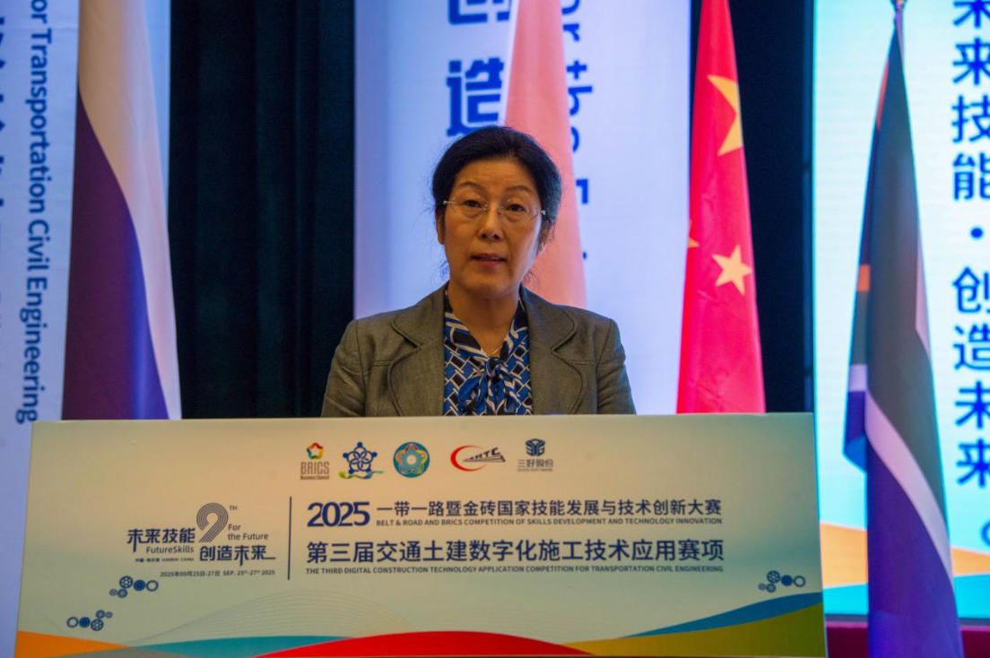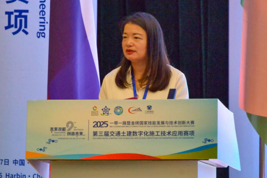 赵立新代表黑龙江省教育厅祝贺大赛举办。她指出,金砖大赛是国际教育合作与技能互鉴的重要平台,本届聚焦交通土建数字化施工,紧扣产业前沿,对培养复合型技术技能人才意义深远。黑龙江作为老工业基地与向北开放门户,积极融入“一带一路”,深化教育国际交流。省教育厅始终重视技能大赛,鼓励院校参与金砖等高水平赛事,推动技术进步与人才培养模式创新。她寄语选手赛出风格水平,院校以赛促教,深化教改,增进国际青年友谊。