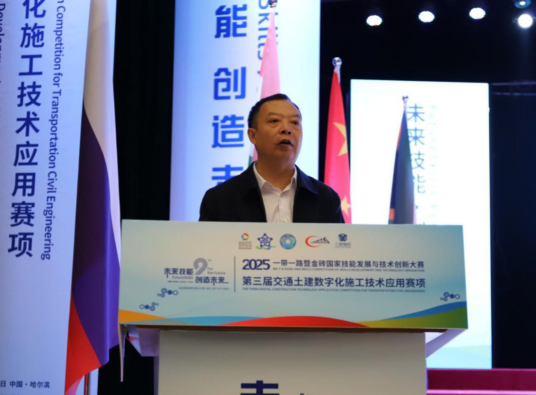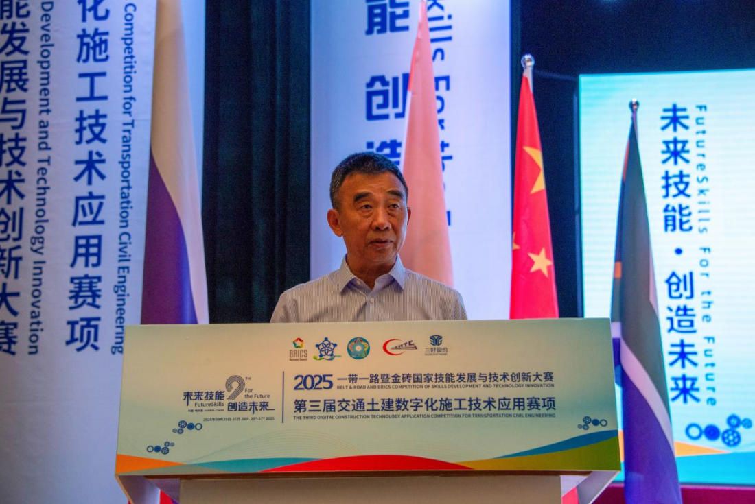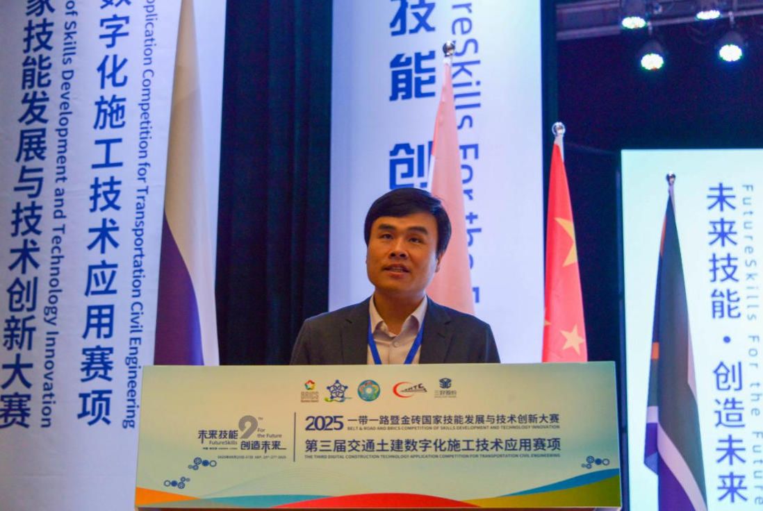 工匠精神,与赛事主旨深度契合。他指出,交通土建正从“一锹一镐”迈向“一键生成”的数字智能时代,技能人才是变革核心。金砖大赛已成连接金砖技能合作的“黄金纽带”,本届聚焦“数字赋能基建”,是技艺比拼更是理念创新,呼应“一带一路”共建共享。作为技术支持单位,三好股份公司深耕土木教育,以数字化平台助力“以赛促教”,期待为青年搭建成长阶梯,寄语选手“既做筑路人,也做创新者”。