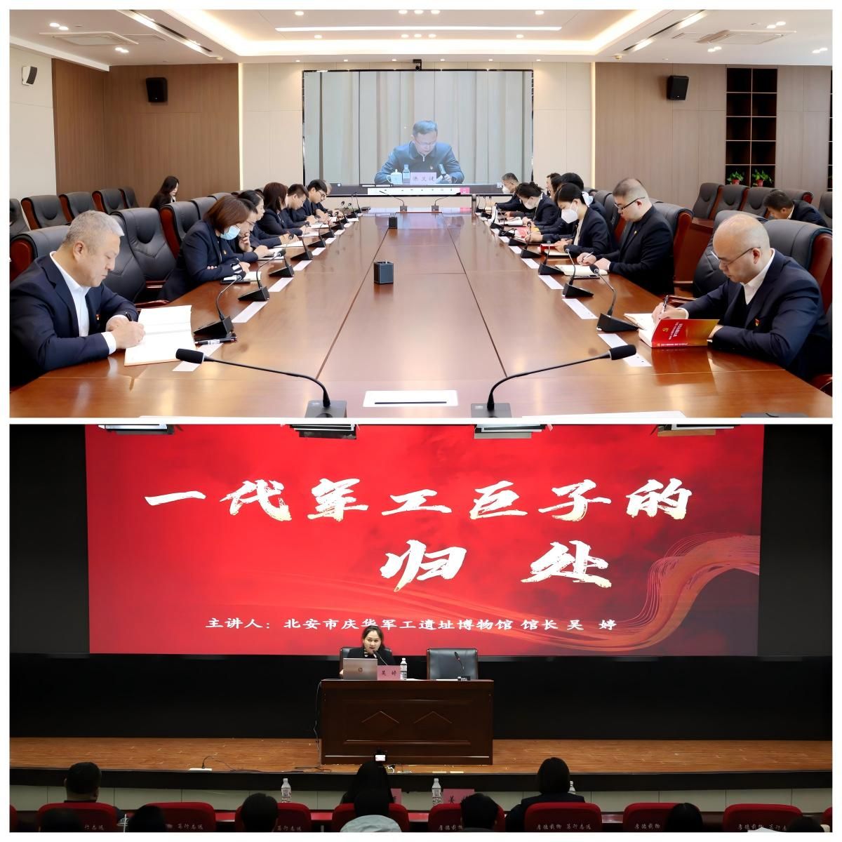 构建“校内校外联动、线上线下融合”的立体宣讲网络。组织宣讲团成员参加中国中铁党委、中铁国资党委学习宣传贯彻党的二十届四中全会精神专题视频会议,准确把握宣讲内容;邀请学院“大思政课”实践教学基地——北安市庆华军工遗址博物馆馆长吴婷作专题报告,将思政课堂延伸至红色热土,充分发挥红色资源的育人功能,推动军工精神与铁路报国情怀在哈铁学子心中同频共振、交融升华。