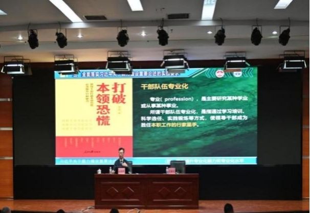 培训环节,赵春辉教授以《习近平总书记关于能力建设重要论述》为题,从重大意义、核心内容到实践要求,系统阐释干部能力建设核心要义,深入剖析“本领恐慌”现实挑战,为干部提升政治能力与专业素养指明清晰路径,授课兼具理论深度与实践指导性。张丽新教授围绕《中层干部的角色认知与履职能力提升》《综合管理能力提升策略》两门课程展开教学,以“角色-能力-策略”为主线,明确中层干部三重角色定位,梳理政治、专业、管理、创新四大核心素养,提供终身学习、实践锻炼等可操作的提升方案,精准破解工作堵点难点。