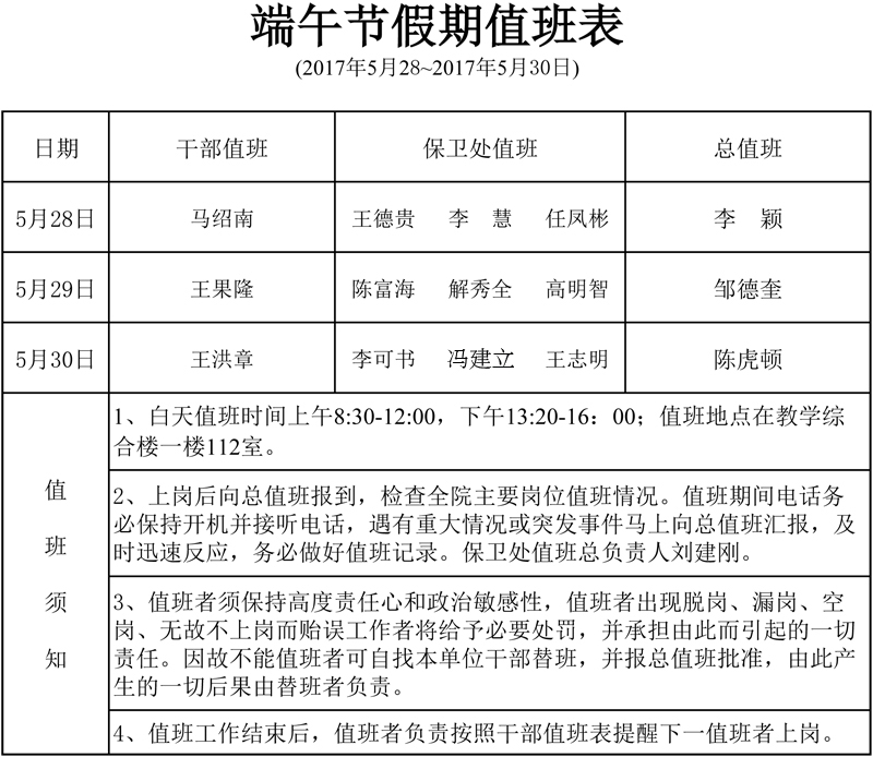 端午节假期值班表 (图)