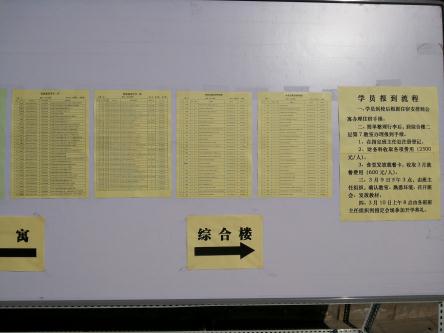 3月9日,一进大门就感觉到了太铁人工作态度的严谨和认真,无论是门前清晰的报道流程指示牌,还有之前我和太原铁路局职工培训中心的学生科杨科长沟通过几个学生报到前的提出的问题,比如学生的学费每次只交一学期的并且不能刷卡只能带现金,报到只需带必要的生活用品,不能提前报到等都能淋漓尽致的体现。