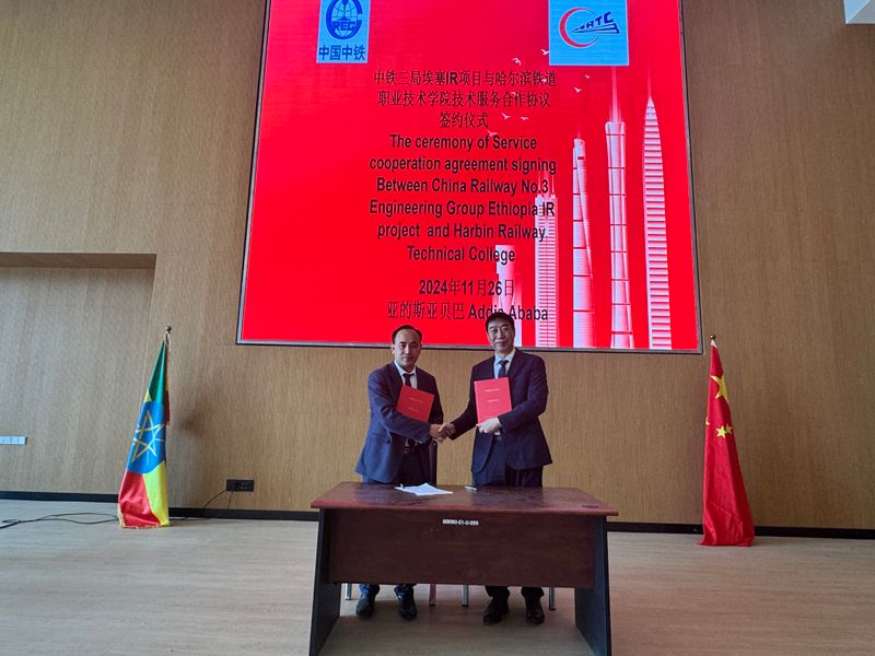 26日,学院与中铁三局IR项目签订了技术服务及培训协议。签约仪式上,中铁三局IR项目领导、中方及当地雇员,以及埃塞教育部主任Arilu Hal Michael Agdon等。就联合培养中铁三局招收的本土员工、中铁三局直接录用学院与阿达玛科技大学(ASTU)联合培养的技术人员、学院组织技术团队为IR项目提供技术服务等事宜达成共识。