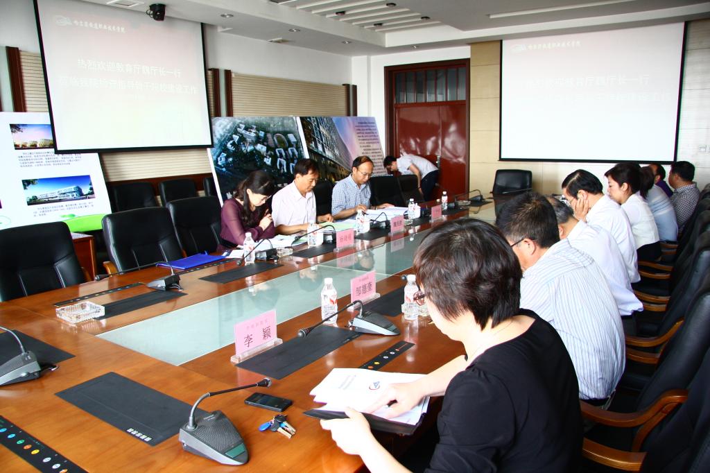 学院新闻 首页 > 新闻中心 > 学院新闻 > 正文 教育厅魏厅长一行莅临检查指导骨干院校建设工作 作者:日期:2013-06-08 (哈铁学院消息)6月5日,黑龙江省教育厅副厅长魏兆胜率高教处处长丁哲学、副处长杨晓明亲临我院,对我院国家百所骨干院校建设情况进行检查指导。 学院全体领导班子及相关部门负责人参加了汇报会。观看学院宣传片后,学院院长韩仁海首先向魏厅长长期以来对学院关心支持表示感谢,此次在骨干院校建设关键阶段亲临学院指导,再次体现了厅长对黑龙江职教事业的高度责任心和对学院的关心和帮助。院长韩仁海向魏厅长一行汇报了学院新校区建设情况,我院骨干院校建设的预期目标、目前建设情况、校企合作体制与机制建设,与中国中铁、中铁三局、哈尔滨地铁集团,黑龙江省长力建设有限公司的校企合作情况及第一家先招工后入学的现代学徒制的开展工作情况,并对目前建设中存在的问题做了说明,当前建设工作重要问题是新校区没有建设好。 听完汇报魏厅长指出:按照教育部通知,哈铁学院作为黑龙江省第一家参加验收工作的学校,时间紧、任务重,在此情况下充分展示出行业办学、服务经济发展的特色尤其重要,为此要把握验收三个点。一是按照立项内容完成好。材料要充分打磨、注重提炼,应该用我们的优势补劣势,重点理解一流骨干内涵的精髓并描绘出来;二是校企合作体制与机制的创新。目前学院校企合作应在深度、广度、持久性上实现几大突破,让我们的办学思想与企业发展同步甚至略有超前,在可持续发展中实现突破,为长远建设打基础,在战略高度上实现引领;三是如何在评价中体现出对国内高职教育的引领。现代高职教育内涵在于教育思想理念现代化、制度现代化、内容现代化、信息现代化、国际化、教育与社会发展一体化。需要我们在实践中描绘出高职在经济发展中不可替代的作用,以验收工作为契机,确定真正达到国内一流高职的契合点,确定学院长期发展战略目标。丁哲学处长和杨晓明副处长也分别对如何做好验收工作提出了自己的观点和要求。最后,韩院长代表学院班子表态,将以此次检查为契机,认真学习贯彻教育厅领导的精神,为以优异成绩通过验收而继续奋斗。
