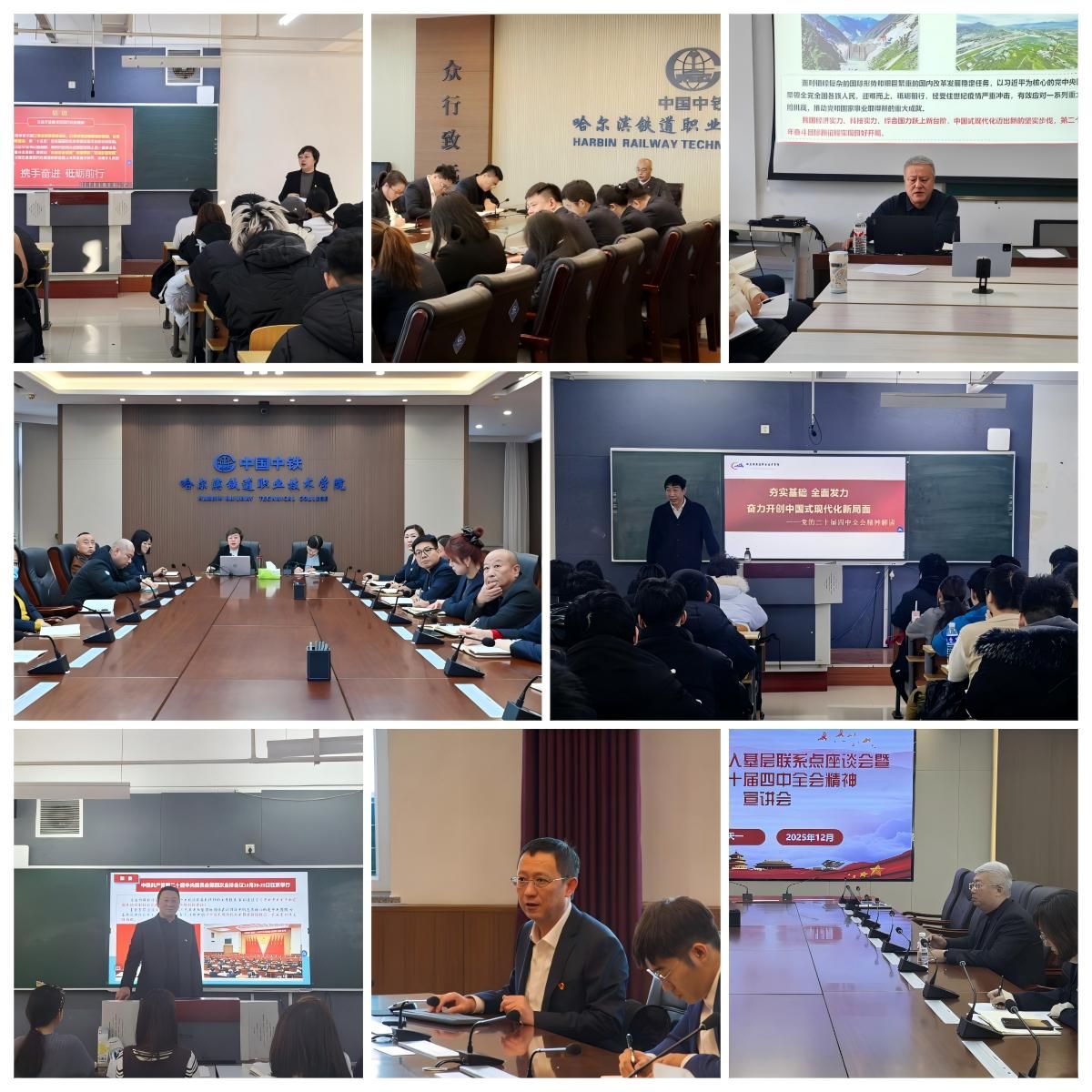 学院党委将学习贯彻全会精神作为“一把手工程”,党委书记牵头制定《哈铁学院学习贯彻党的二十届四中全会精神宣讲工作方案》,明确“分层推进、全域覆盖”目标,成立由领导班子成员、思政课骨干教师、学生党团骨干组成的“三级宣讲矩阵”。