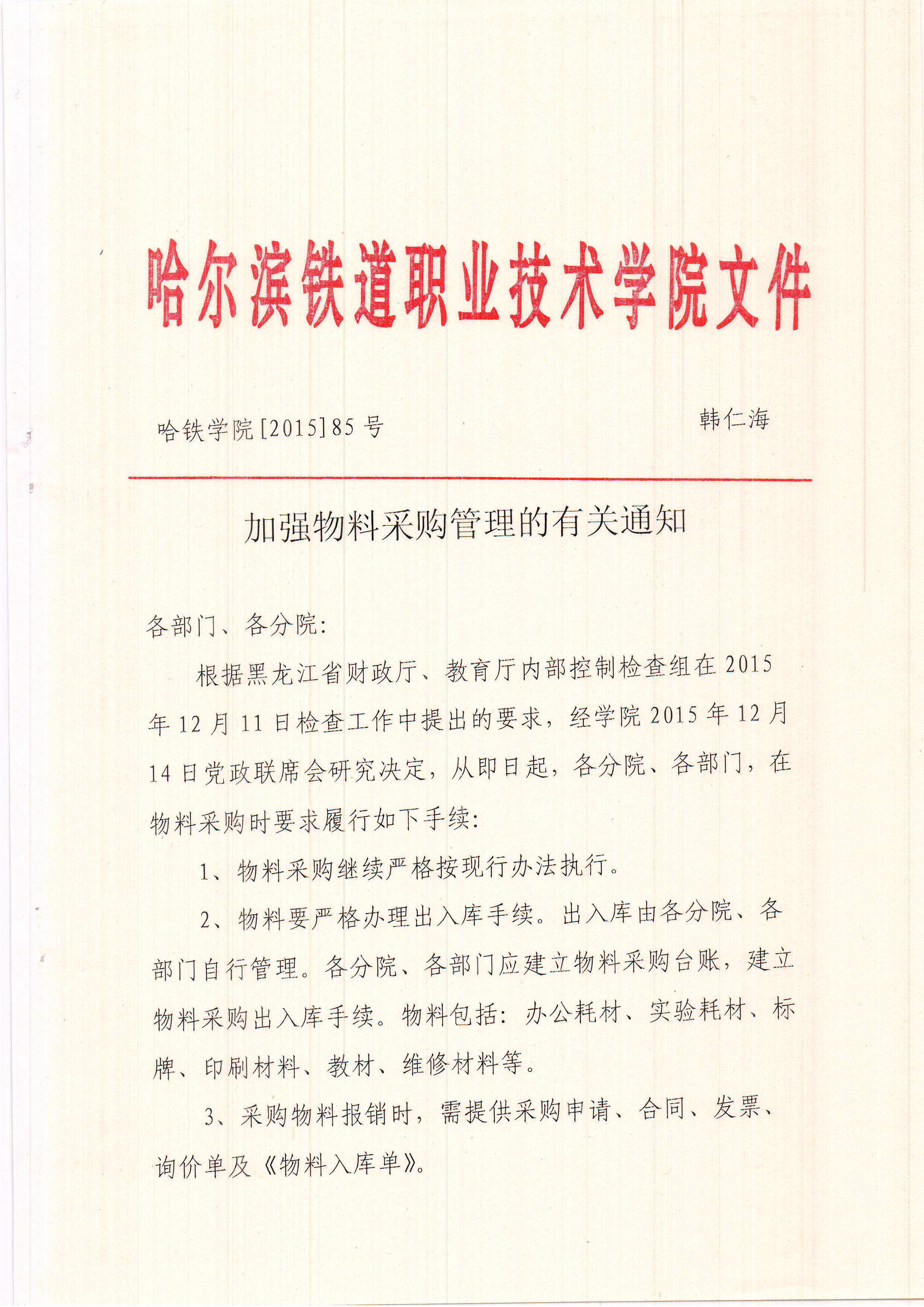 加强物料采购管理的有关通知