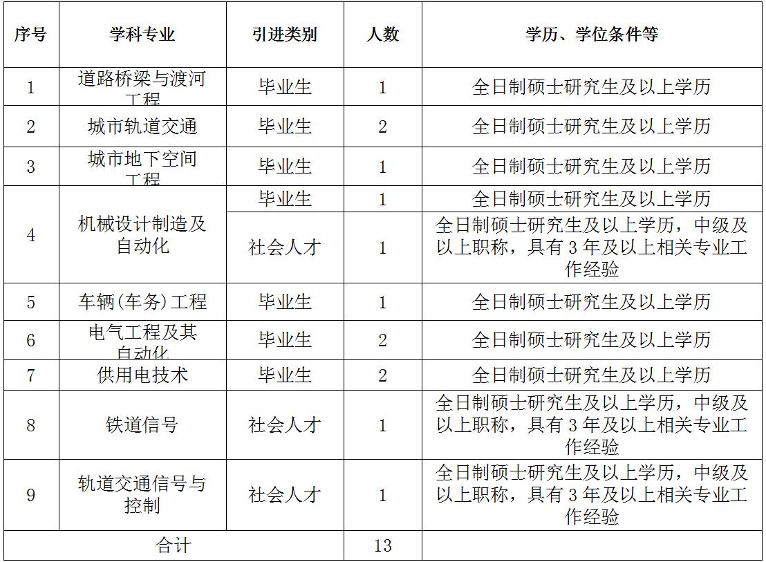 1.硕士研究生引进计划硕士研究生引进计划总计13人,专业、类别、人数、学历条件如下表: